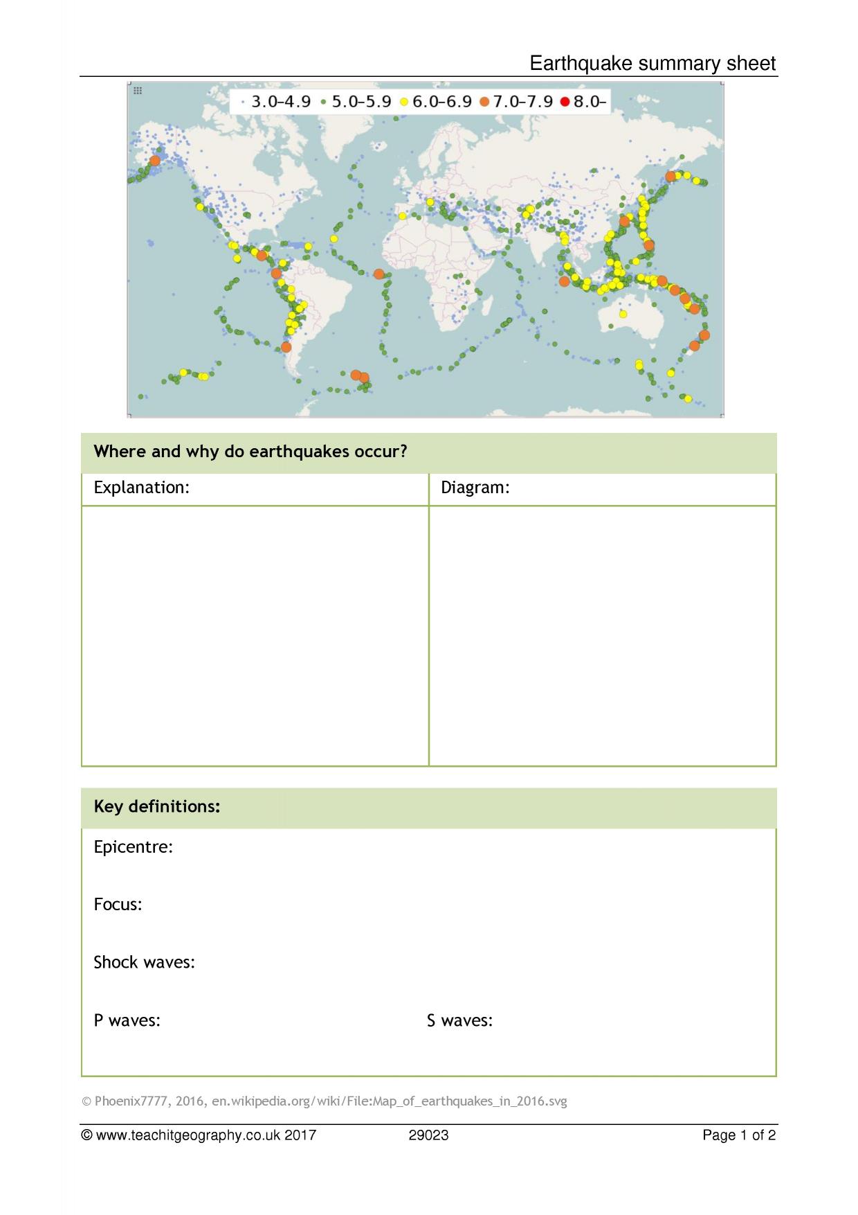 Learn where volcanoes and earthquakes occur understand geography use critical thinking to find plate boundaries answer relevant discussion questions on worksheet procedure print the appropriate maps (see materials) for use.